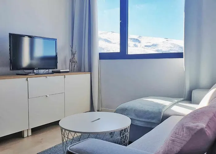 Om du vill njuta av din semester i Sierra Nevada, kan du bo i lägenheten Estudio Infinity Con Parking Sierra Nevada med 1 sovrum som ligger cirka 14 minuter till fots från Surfin och inom 6 km från Veleta. Om du reser till Sierra Nevada för en skidupplevelse erbjuder den 45 m² stora lägenheten skidskola och skidförvaringsrum.